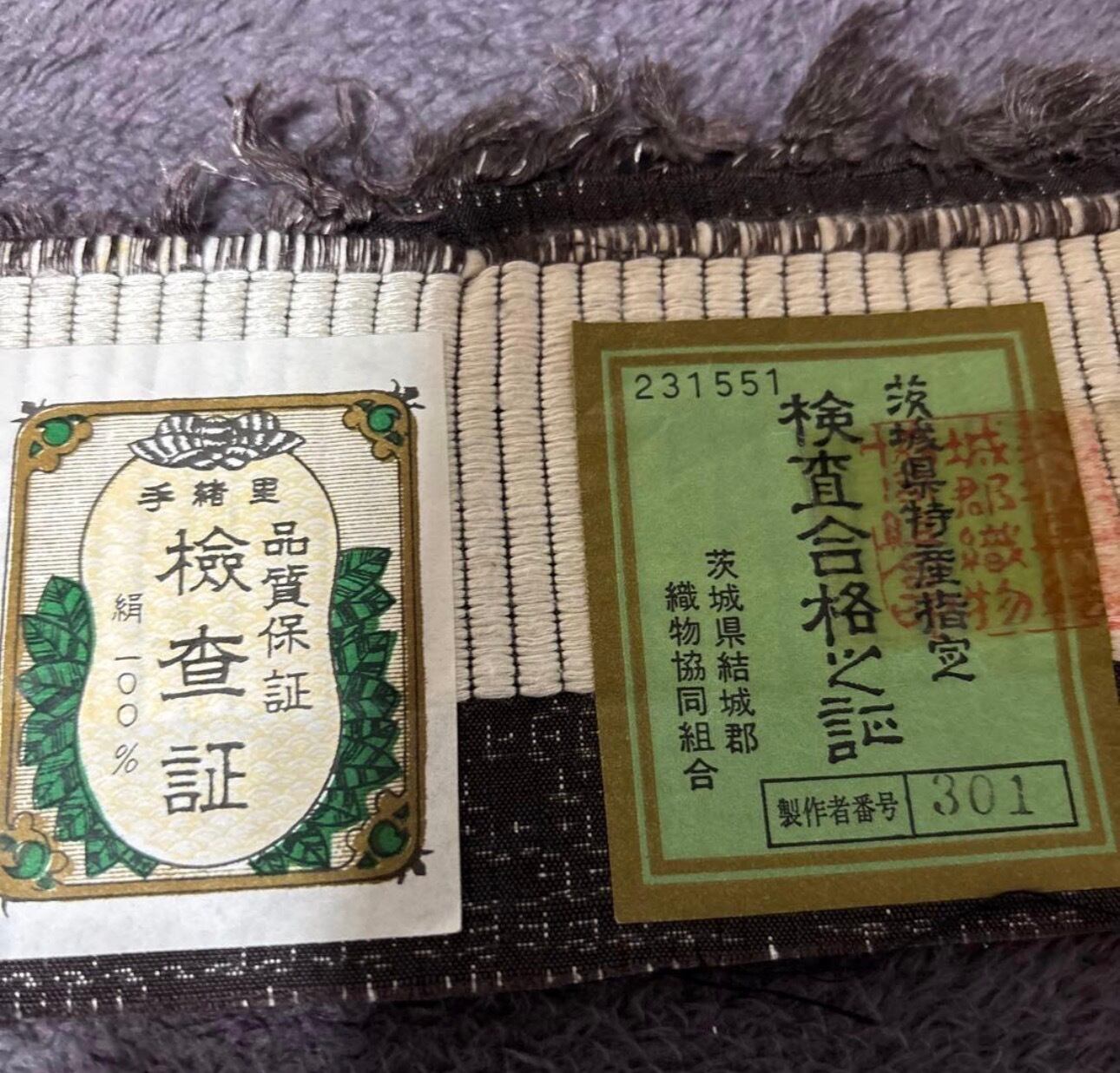 未使用近い 美品 袷 正絹 証紙 はたおり娘 奥順 結城紬 80亀甲 フルセット