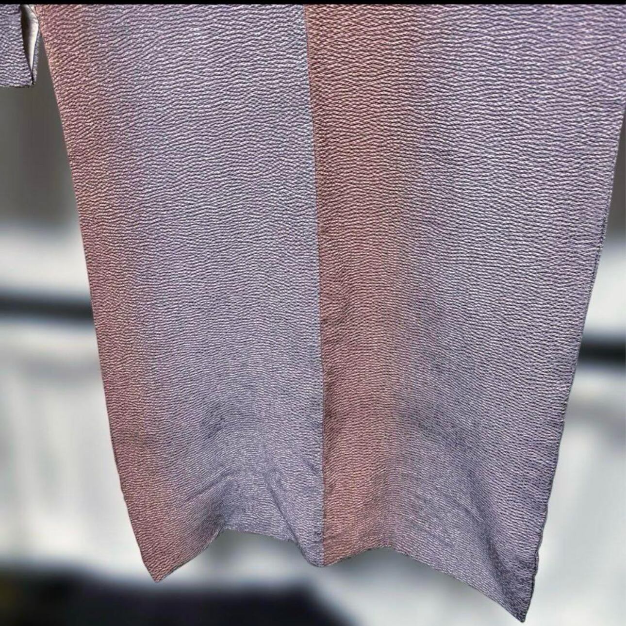 ふっくらと立ち上がる粒立ちと、しっとりとした正絹の光沢。淡く優雅な紫×茜色のグラデーションが揺らぎ、冬の街に静かに馴染みつつ、圧倒的な存在感を放ちます。