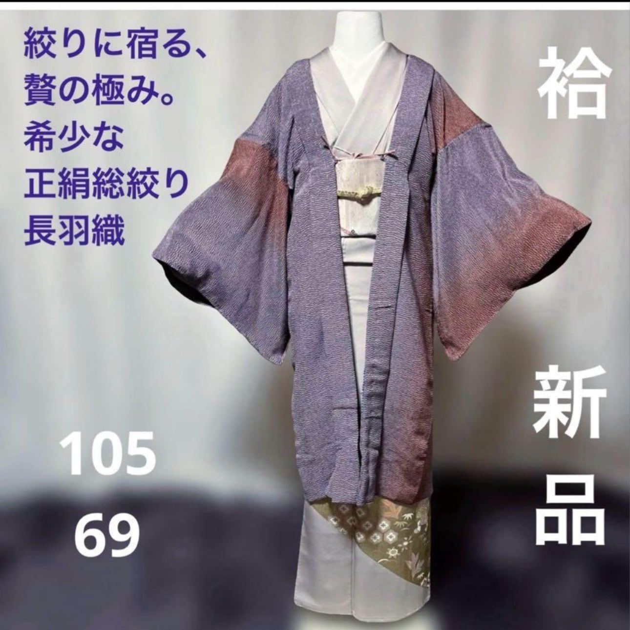 未使用 新品 美品 袷 正絹 総絞り 長羽織 着物 裄丈長め