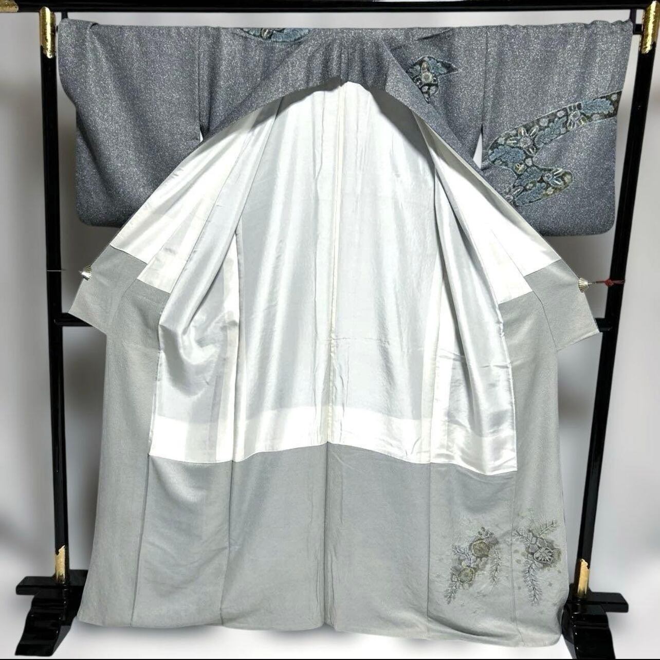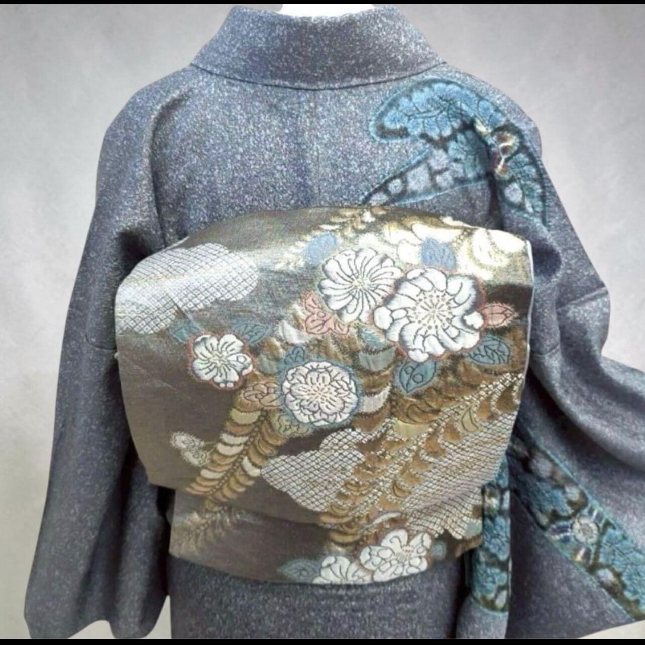 銀通しの生地が放つ繊細な艶めきが大変美しく、落ち着きの中に華やぎを宿した、品格ある一枚でございます。