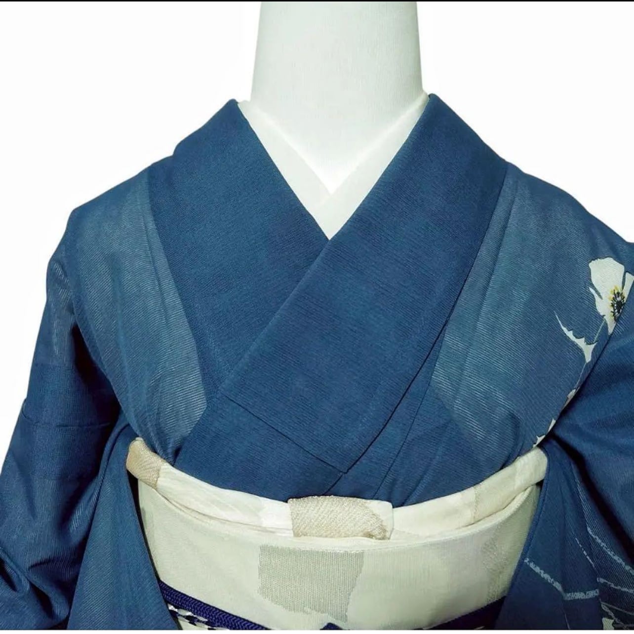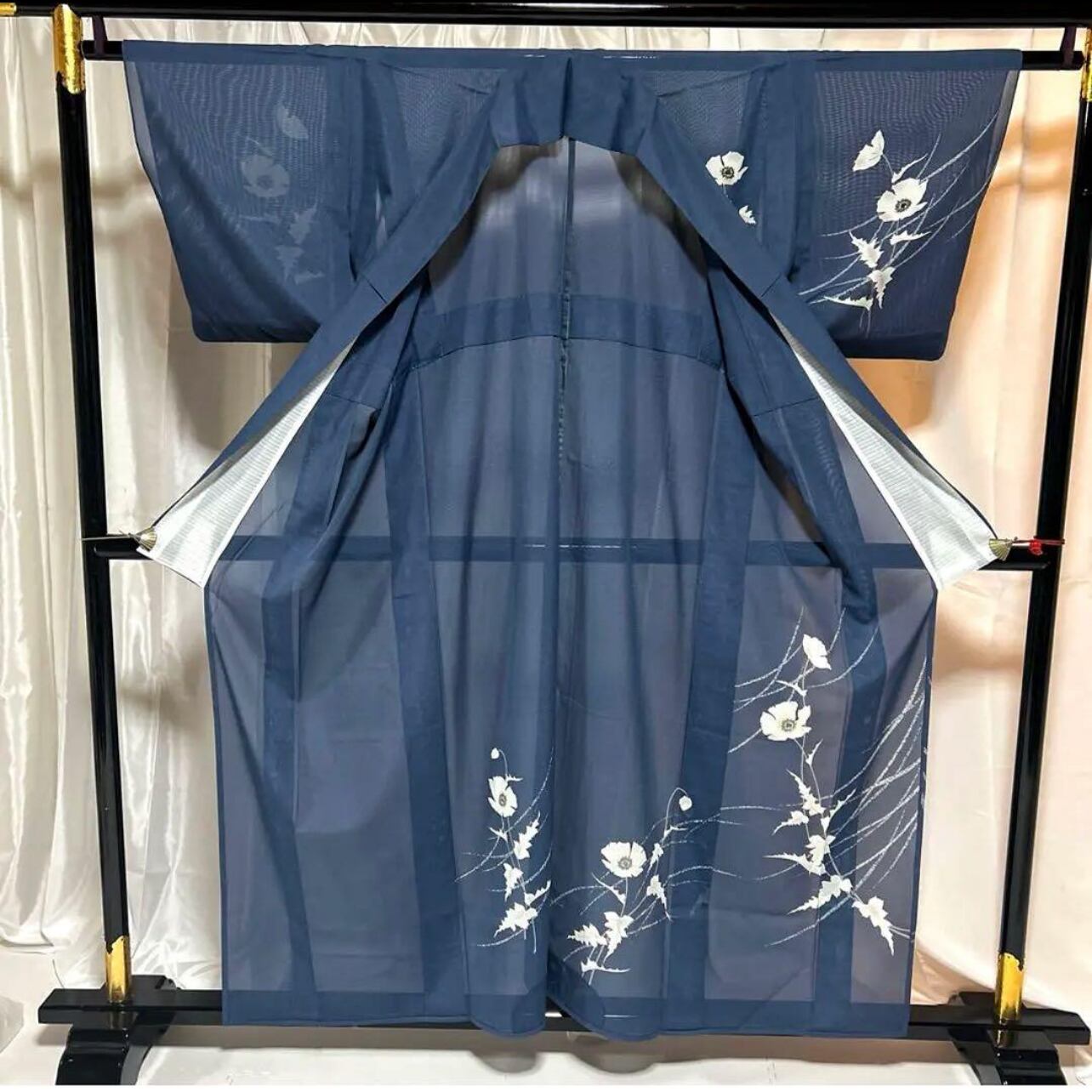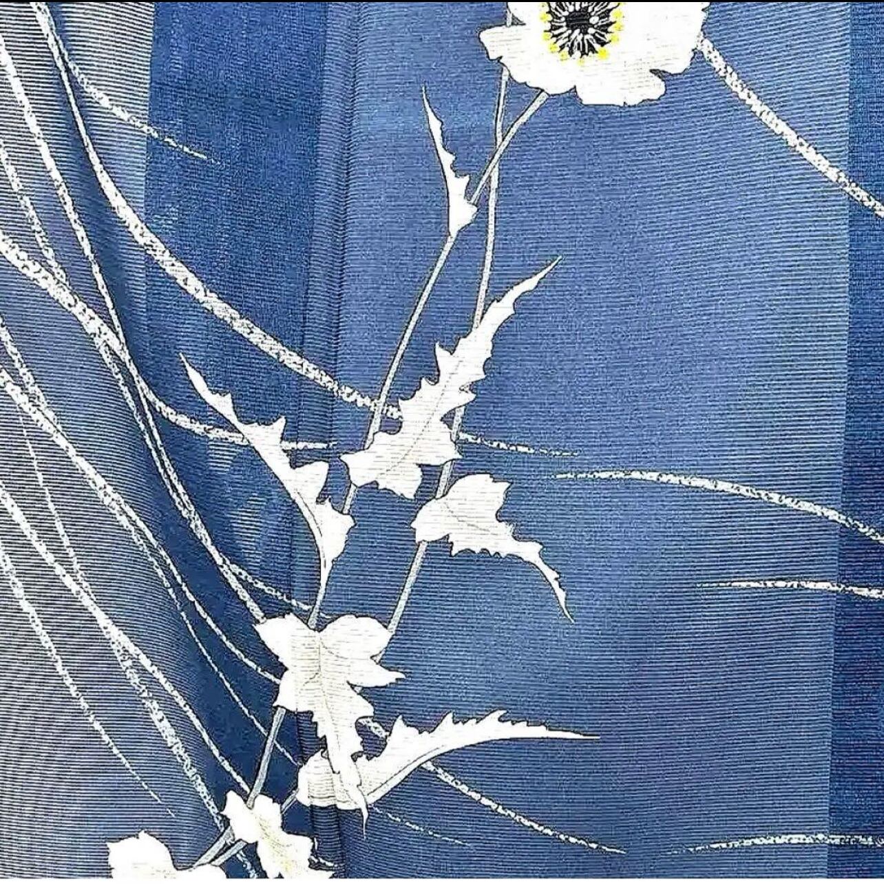 流れるような花模様が涼感を演出し、落ち着きの中にも華やかさのある一着です。