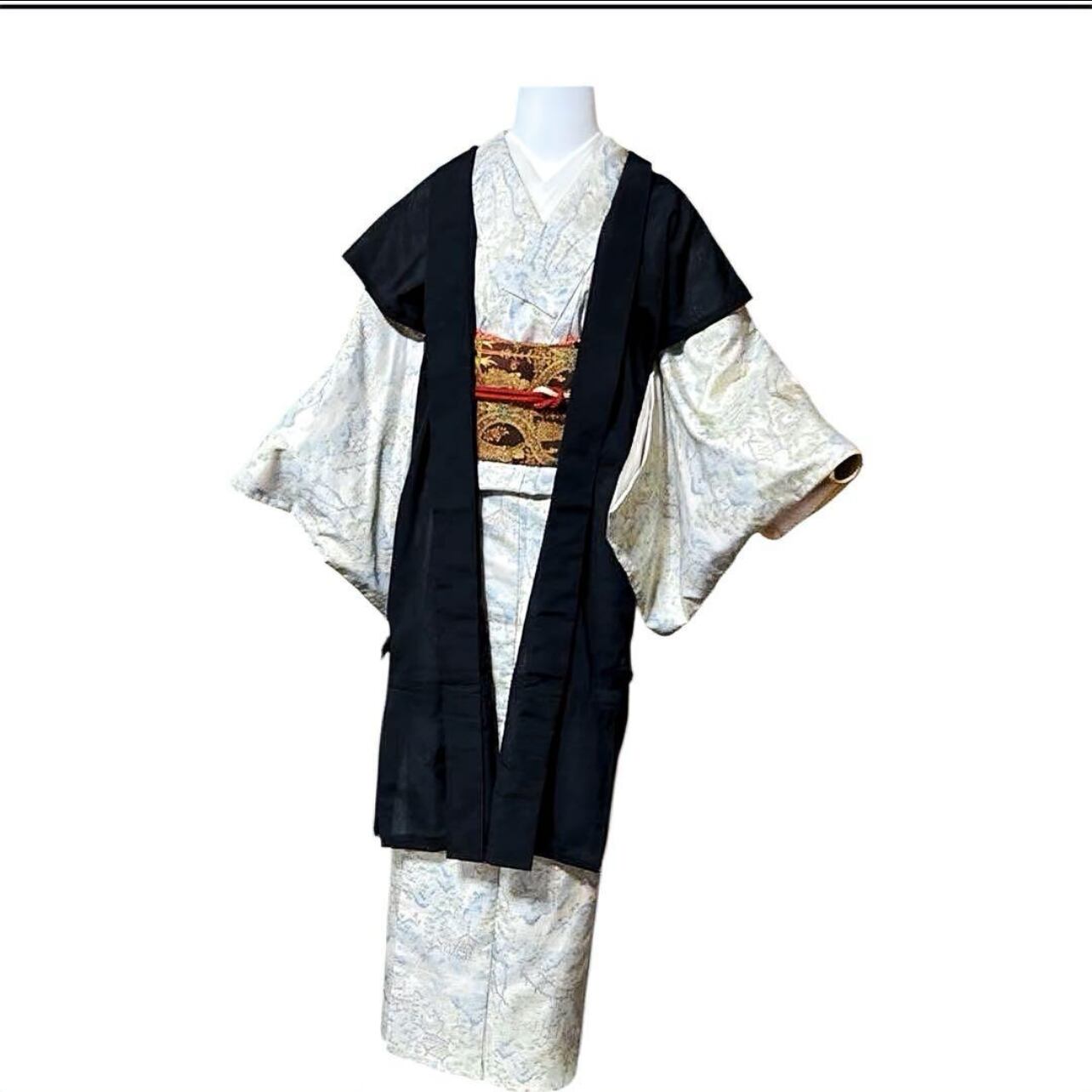 【サイズ(cm)】羽織単品 未使用近い 美品 絽 袖なし長羽織 正絹 諏訪刺繍 ゆったり まちなし