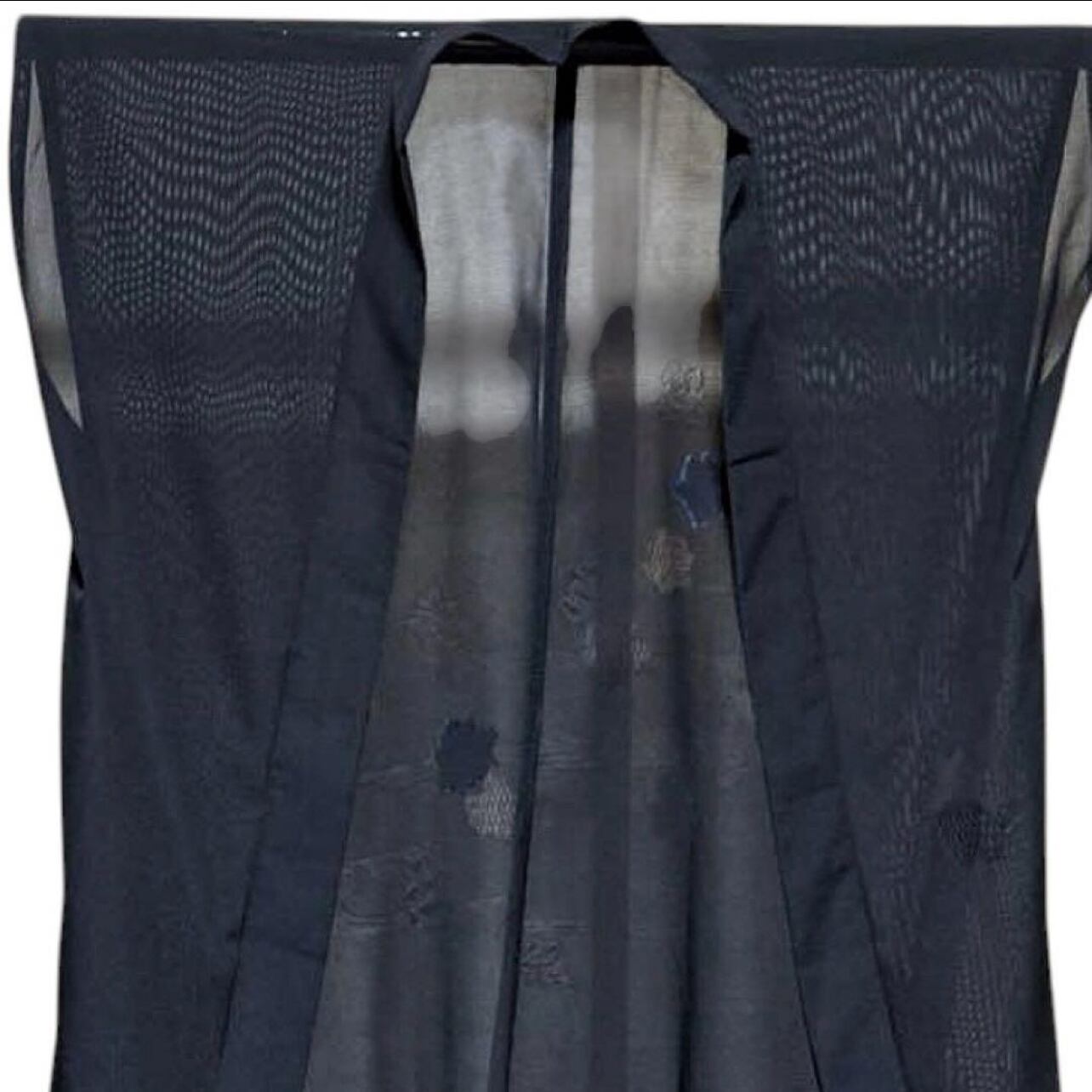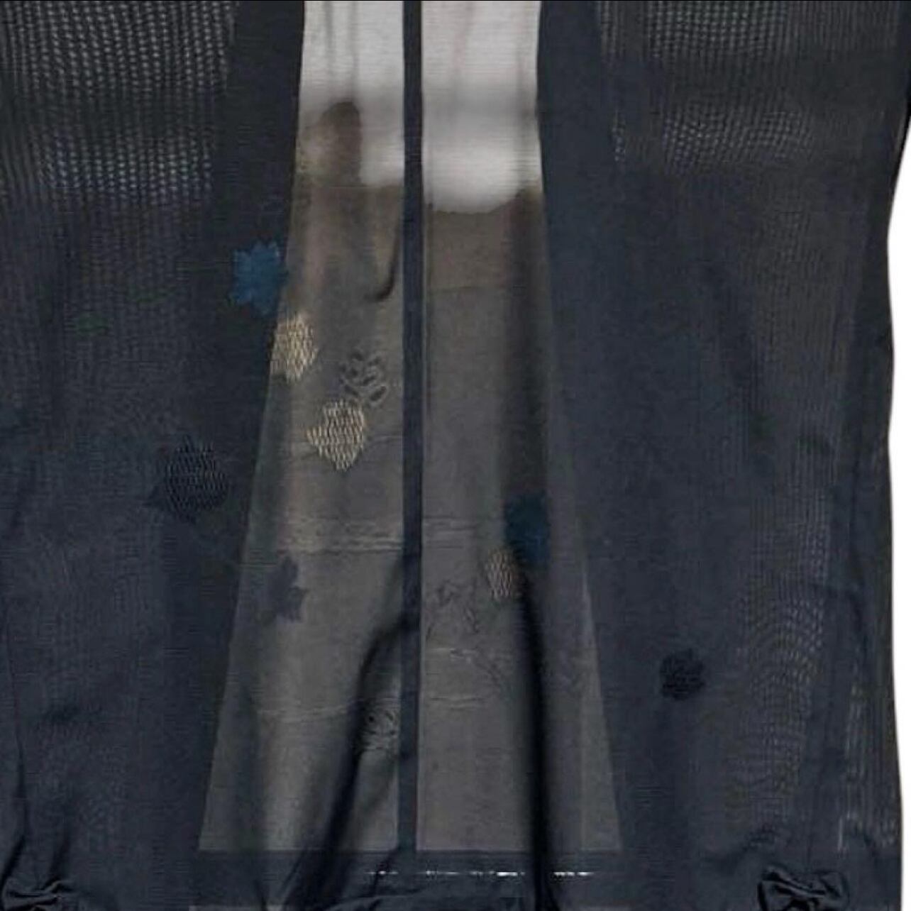 美品 正絹 紗 袖なし長羽織 ドロンワーク 夏羽織 黒羽織 ロング 身丈103