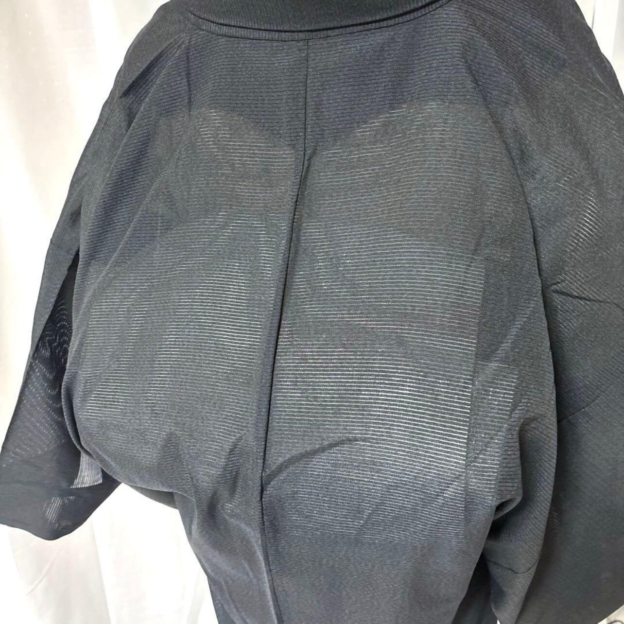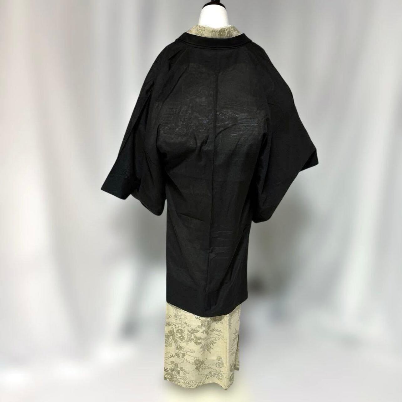 美品 正絹 夏羽織 絽 黒 ロング長羽織 裄丈長め ユニセックス 着回し万能