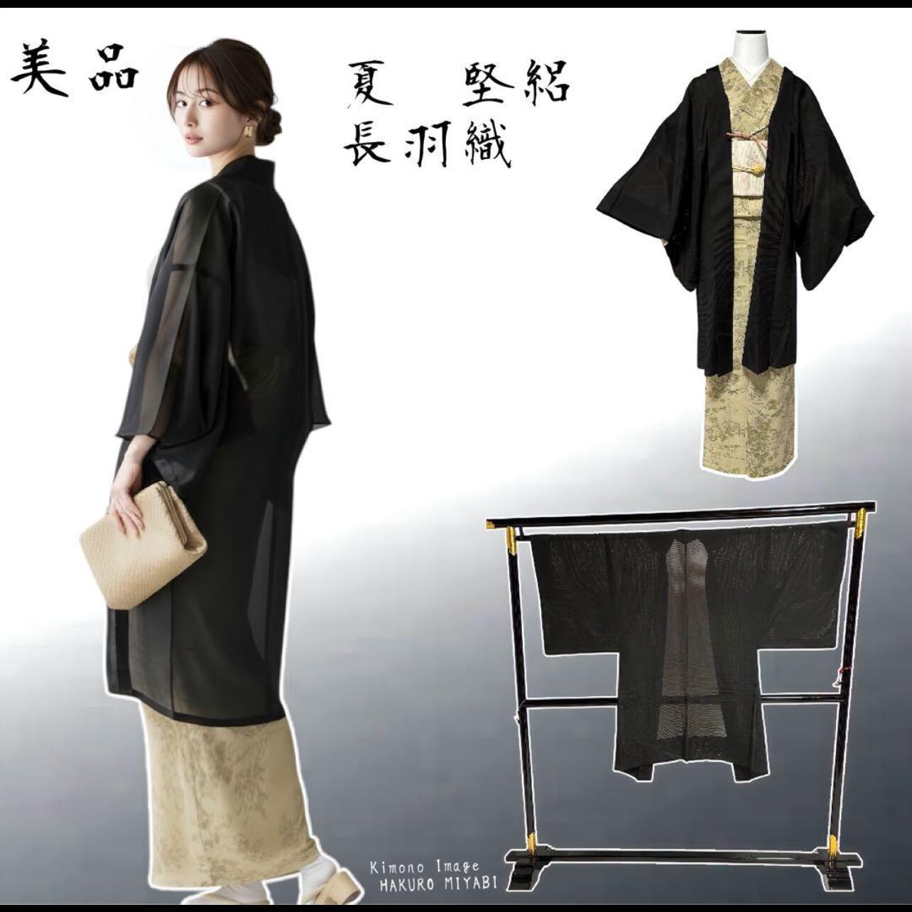 《着物》未使用近い 美品 夏羽織 正絹 堅絽 長羽織 新品夏用羽織紐付き